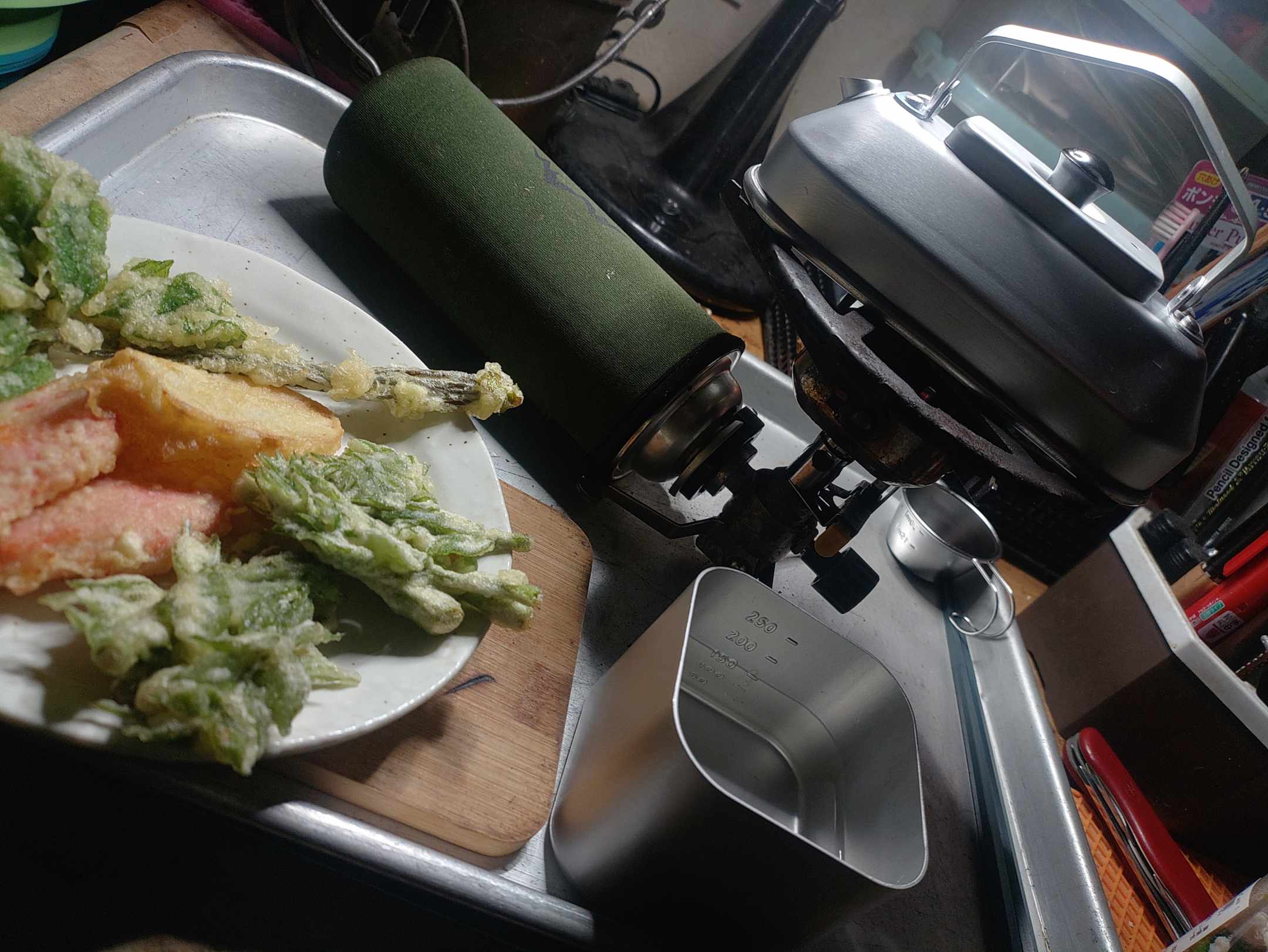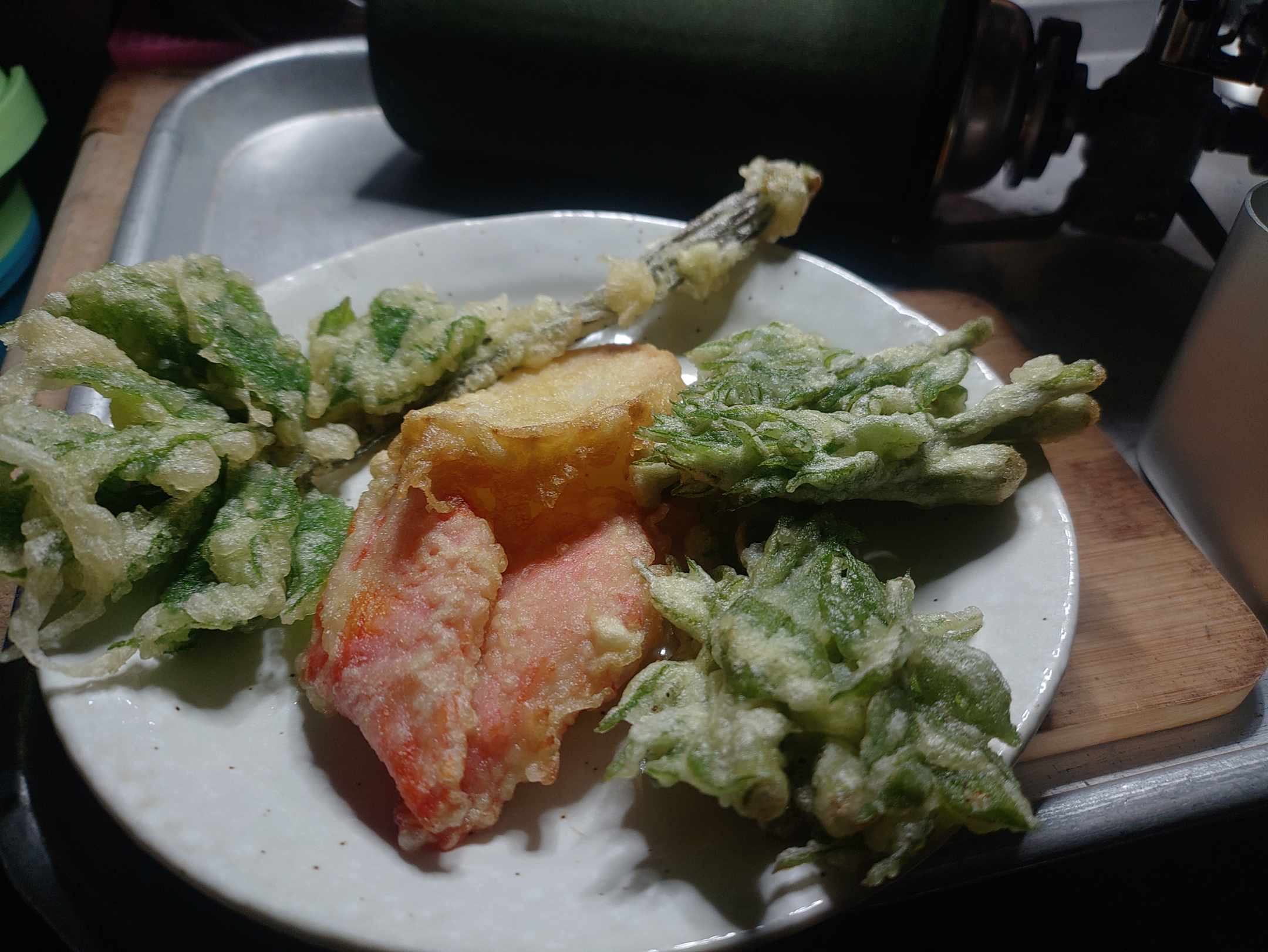 風呂入って 熱燗の日本酒と【ご近所さんからお裾分け】してもらった山菜の天ぷらで一杯♥︎⁡=^ΦωΦ^=ちょっぴりハッピー❤︎=^ΦωΦ^=